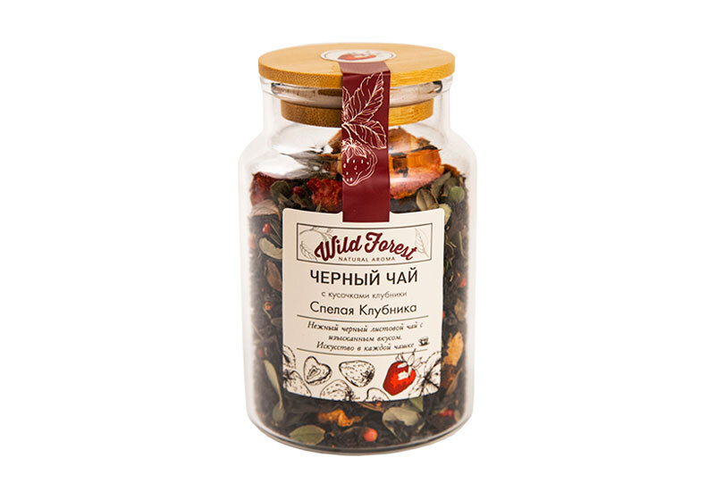 Чай Wild Forest «Спелая клубника» - это чай чёрный крупнолистовой рассыпной с клубникой, листьями брусники и розовым перцем.