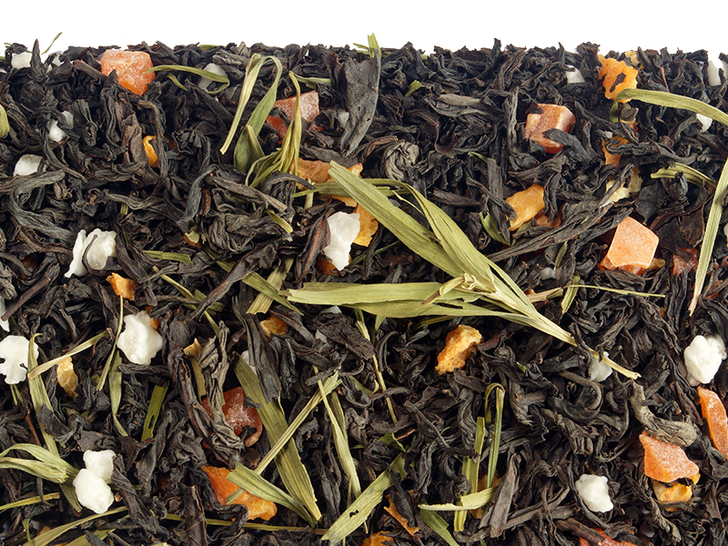Состав: чай чёрный рассыпной листовой крупный, цукаты лимона, цукаты ананаса, кусочки абрикоса, ароматизаторы, листья бамбука.
