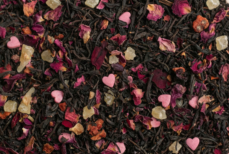 Состав: чай чёрный рассыпной листовой крупный, цукаты ананаса (ананас, сахар, лимонная кислота), ягоды вишни, посыпка кондитерская, лепестки розы, кусочки клубники, ягоды ежевики, ароматизаторы.