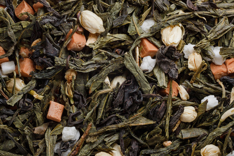 Чай чёрный листовой крупный, Чай зелёный листовой крупный, Жасмин, Карамель, Лимон, Ароматизатор
