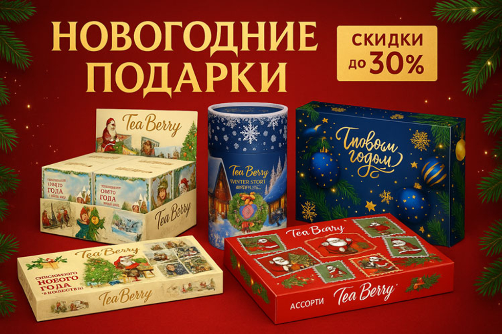 В праздничных, новогодних упаковках, благодаря которым чай становится отличным и стильным подарком.