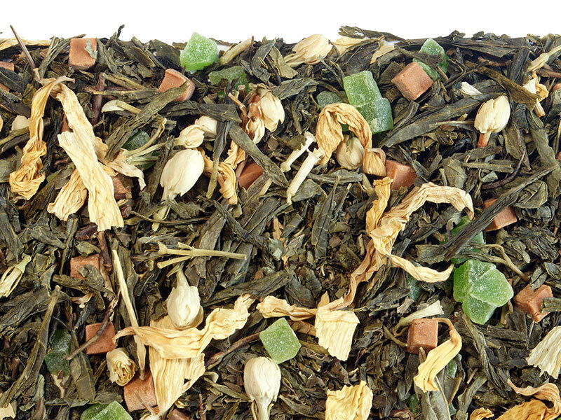 Чай зелёный листовой крупный, Ананас, Жасмин, Карамель, Мята, Подсолнечник лепестки, Ароматизатор