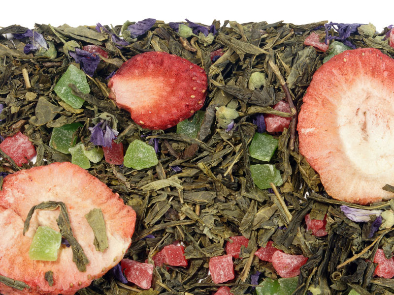 Чай зелёный «Симфония вкуса» - это крупнолистовой китайский зелёный чай с кусочками ананаса и слайсами клубники.