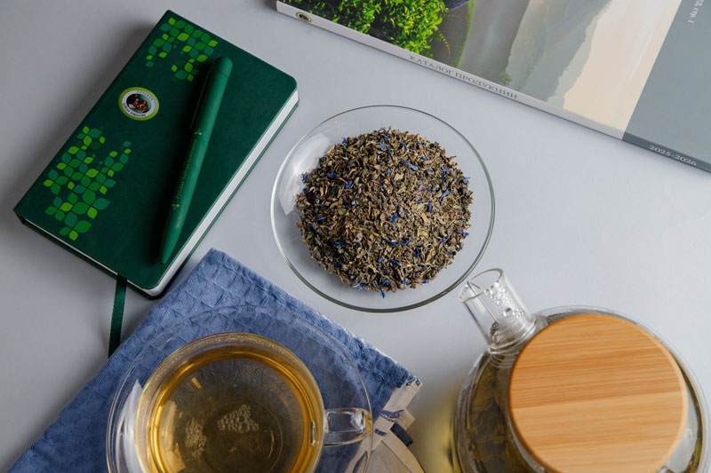Состав: чай зелёный крупнолистовой Китай, мята, василек, ароматизатор.